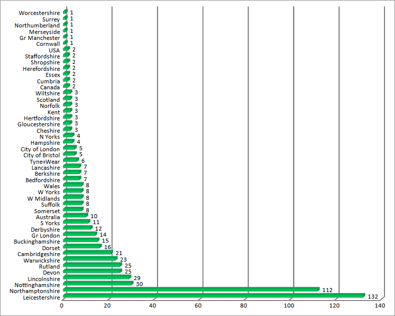 I have rung at 600 towers (as of 30th May 2024). Here is a breakdown by county/country ...